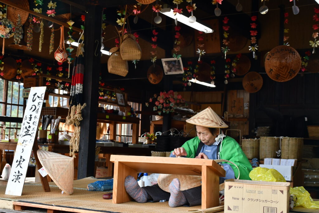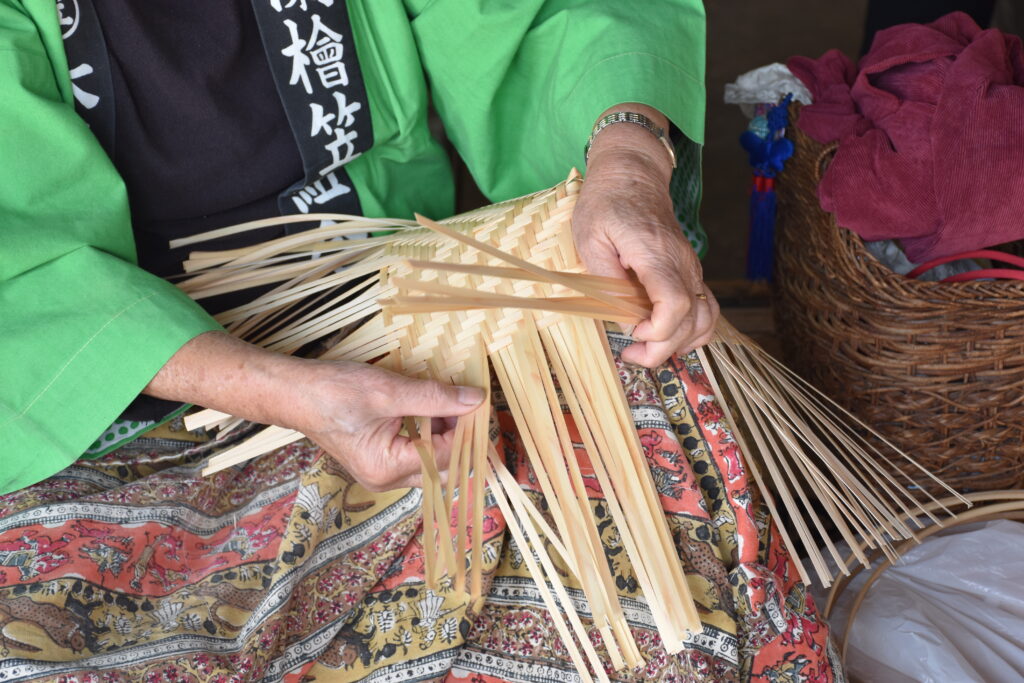 木曽桧を薄く剥き、それを伝統技術により手編みしてつくられる、頭にかぶる笠のことを言います。蘭地区に伝わる伝統産業で県指定伝統的工芸品に指定されている南木曽町の大切な産業です。